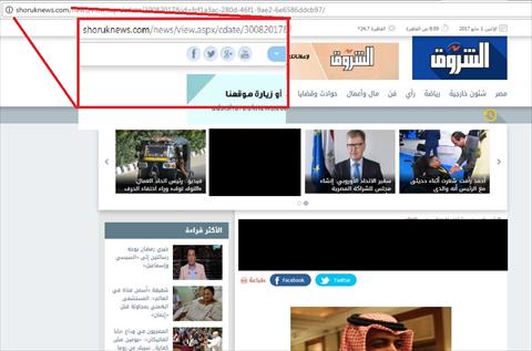 صورة من الموقع الزائف توضح العنوان "الدومين" المُنتحل لموقع جريدة "الشروق" المصرية