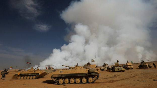 وتزداد مواجهة القوات العراقية للعبوات الناسفة المزروعة على الطريق والسيارات المفخخة والقناصة كلما زاد اقترابها من المدينة.
